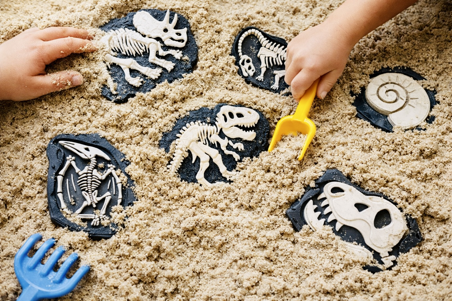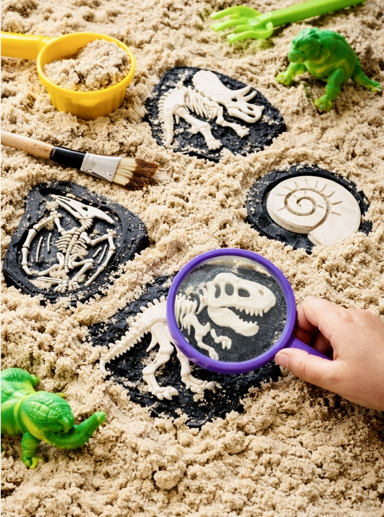 - 7 fosile diferite, cu modele detaliate de schelete (inclusiv dinozauri și forme preistorice)